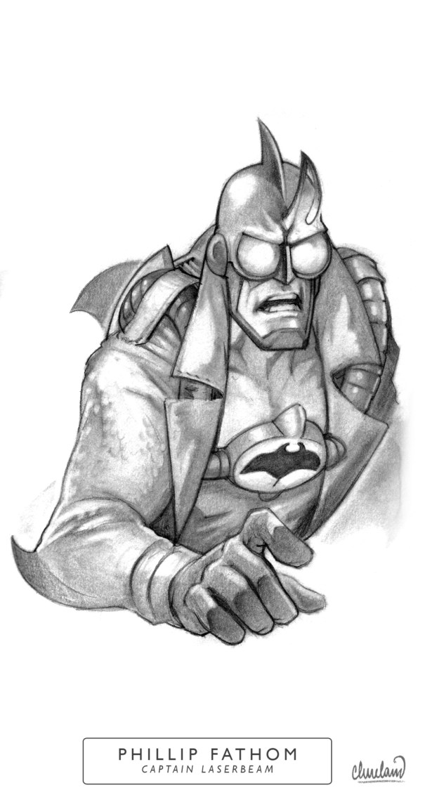 He’s the hero the ocean deserves! Starting up again with my portraits of characters from The Thrilling Adventure Hour. This is Phillip Fathom, the Deep-Dea Detective, an aquatic Caped Crusader right down to the themed gadgets, the combination of mystery and fisticuffs, and the ridiculous growly voice (by the talented Hal Lublin) that lurches into ridiculous growly shouting right when you least expect it. He’s one of my favorite characters in the podcast, which you should listen to. If not, then shame on you.