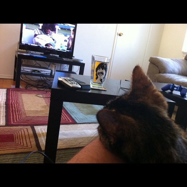 Harley: “How ‘bout a beer fella?” Me: “You’re not even old enough in Cat years. Also, you’re a Cat, so…” Harley: “THIS IS Y I CHOMP ON U BRO” #BestFriends #Football #harleyquinn (Taken with Instagram)