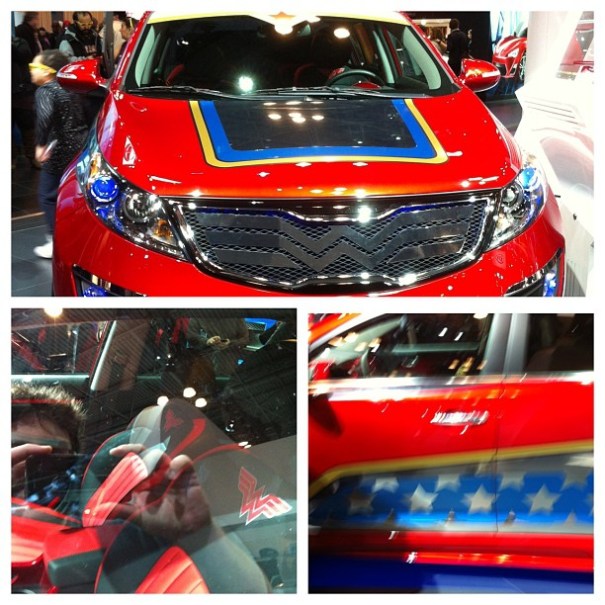 Of course, if this were actually #WonderWoman’s vehicle, it would be invisible. #nycautoshow #kia #dccomics